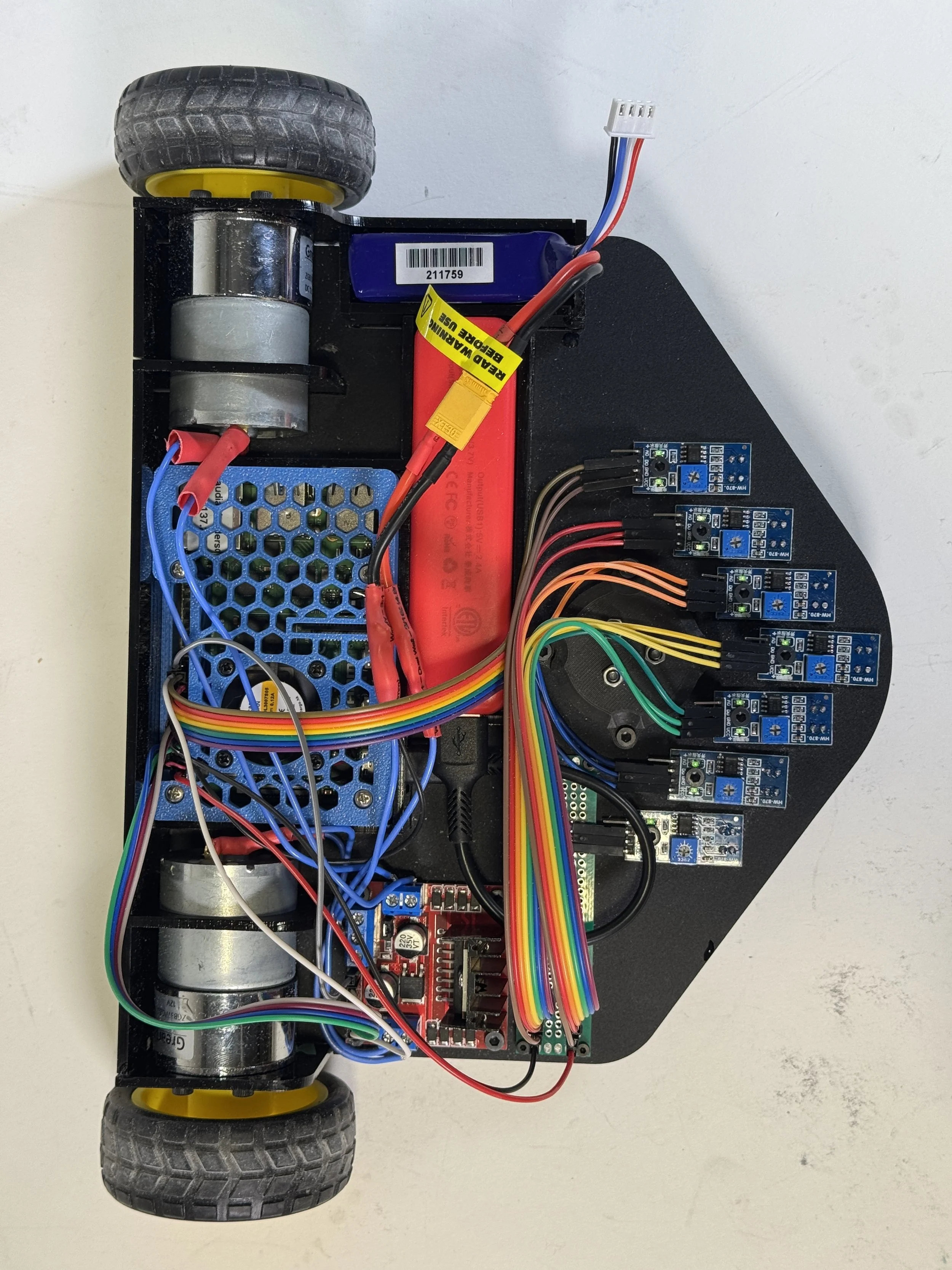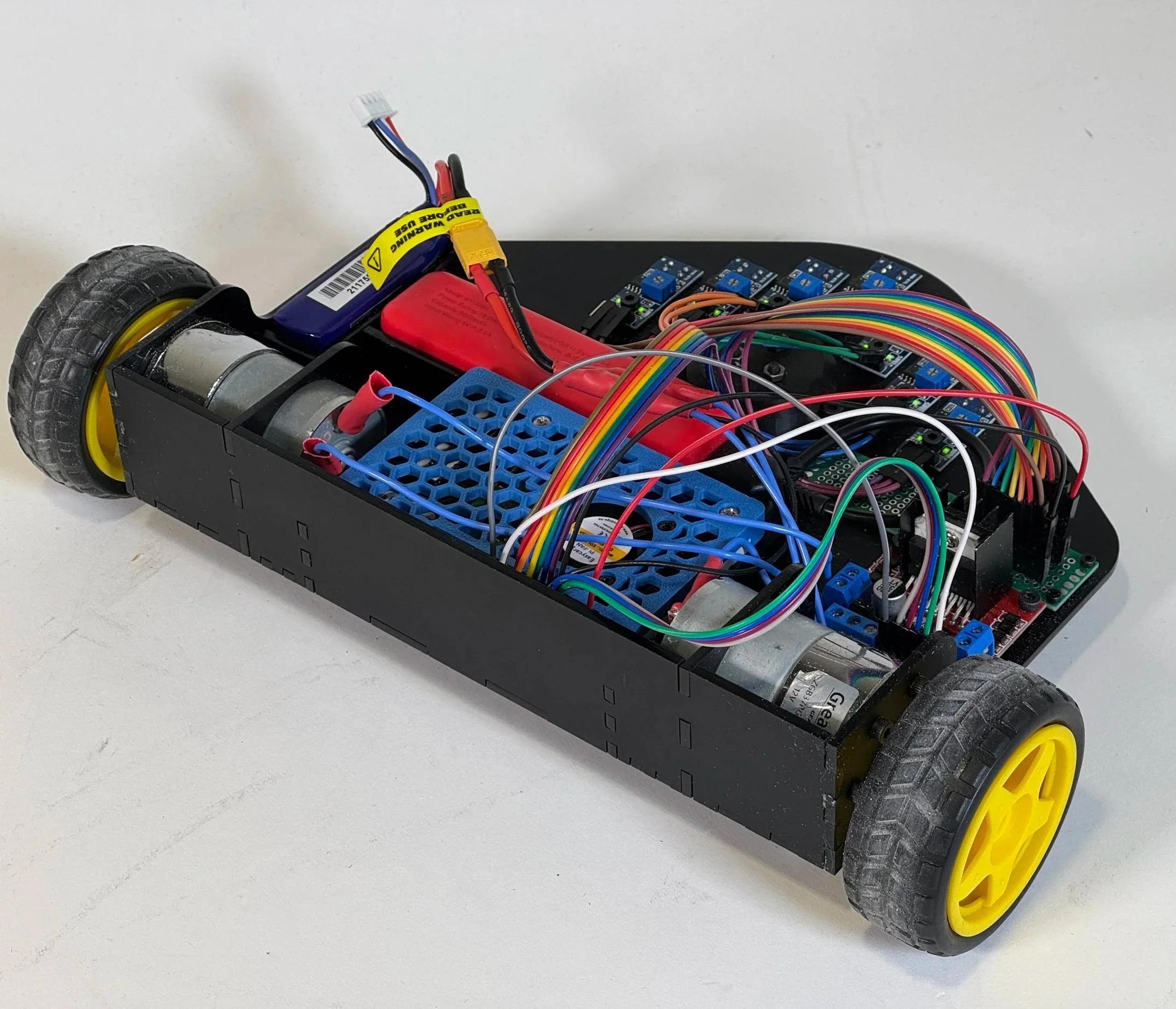 Seeing other people’s designs, it would have been smart to line up the wheels closer to the sensors for more immediate responses to the readings