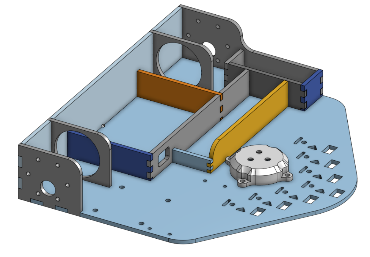 Designed the layout of the laser-cut chassis in CAD, along with 3D printed parts to integrate electrical and mechanical components
